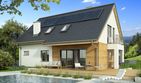 Graficzne opracowanie rzutów poglądowych widocznych na karcie projektu zostało wykonane przez Extradom.pl. Prezentowane przez Extradom.pl wizualizacje wykonane zostały przez autora projektu i należy poczytywać je jedynie za przykład i propozycję wykończenia, wizję architektoniczną autora projektu. Ostateczne wykończenie budynku może nastąpić na wiele sposobów. Szczegółowe rozwiązania zastosowane w oferowanej dokumentacji - w tym również ilość, lokalizacje i wygląd okien, drzwi, kominów - mogą w niewielkim stopniu różnić się od prezentowanej wizualizacji budynku.