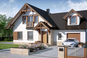 Głównym kryterium na jakie zwracaliśmy szczególną uwagę przy wyborze odpowiedniego projektu, było to aby na parterze oprócz salonu, znajdowały się jeszcze dwa dodatkowe pokoje. Wybrany przez nas projekt Tymon N WRW1097 nie tylko spełniał to wymaganie, ale również bardzo spodobał nam się wizualnie ze względu na świetnie prezentującą się konstrukcję. Oprócz tego, satysfakcjonował nas układ części dziennej, który pozwalał na zamknięcie kuchni.Nie przypominam sobie, abyśmy mieli jakiekolwiek trudności w związku z realizacją naszego domu, a w dokumentacji technicznej raczej nie było nieścisłości, które rzutowałyby na przebieg budowy. Inwestycja w naszym przypadku trwała ok. 2 lat. Co prawda, poddasze nie jest jeszcze w pełni urządzone, ale już nie wiele brakuje. Do nowego domu wprowadziliśmy się jednak bez wykonanej góry, gdyż póki co powierzchnia parteru w zupełności nam wystarcza.Budynek został wymurowany przy użyciu białych, gazobetonowych bloczków, a na dachu zastosowaliśmy blachodachówkę. Bryłę z zewnątrz ociepliliśmy 15 cm warstwą styropianu. Uważam, że kwota podana w sugerowanym kosztorysie została przeszacowana - inwestycję bez problemu można zrealizować zdecydowanie niższymi kosztami.Projekt Tymon N WRW1097 przewidywał otwartą kuchnię, jednak rozmieszczenie parteru umożliwiło nam zamknięcie jej na część wypoczynkową. Oprócz tego, postanowiliśmy zmienić oryginalne rozmiary okien oraz zrezygnować z jednego przeszklenia w salonie. W dalszym ciągu jest on wystarczająco oświetlony, a dodatkowo dzięki zastosowanej zmianie stał się bardziej ustawny. Wejście do kotłowni od strony korytarza dobrze sprawdziłoby się przy ogrzewaniu gazowym lub olejowym, jednak gdy tak jak w naszym przypadku dom ogrzewa się paliwem stałym, takie rozwiązanie nie jest do końca dobrym pomysłem. Postanowiliśmy więc nie wstawiać drzwi w tym miejscu, a do kotłowni wchodzimy przechodząc przez garaż. Dzięki temu w domu jest zdecydowanie czyściej - nie kurzy się, a żadne zapachy generowane przez piec nie dostają się do części mieszkalnej.Gdybym budowała nasz dom po raz kolejny zdecydowałabym się nieco powiększyć wąski pokój na parterze. Można byłoby to zrobić kosztem kilku centymetrowej powierzchni salonu - taka zmiana nie byłaby zauważalna w strefie wypoczynkowej, zaś sypialnia byłaby bardziej ustawna. Myślę, że warto również zastanowić się nad tym, aby trochę poszerzyć hall oraz łazienkę na parterze.Oprócz tego w naszym domu dostrzegam same plusy. Projekt domu parterowego z poddaszem użytkowym Tymon N WRW1097 został dobrze przemyślany, a szczególnie satysfakcjonuje mnie układ części dziennej. Salon jest bardzo przestronny, a przewidziany w nim przeszklony wykusz to naprawdę dobre rozwiązanie. Mimo, iż zdecydowaliśmy się na zamknięcie kuchni, znajduje się ona zaraz przy strefie wypoczynkowej, co jest bardzo wygodne. Pozdrawiam.