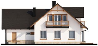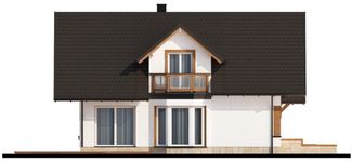 Graficzne opracowanie rzutów poglądowych widocznych na karcie projektu zostało wykonane przez Extradom.pl. Prezentowane przez Extradom.pl wizualizacje wykonane zostały przez autora projektu i należy poczytywać je jedynie za przykład i propozycję wykończenia, wizję architektoniczną autora projektu. Ostateczne wykończenie budynku może nastąpić na wiele sposobów. Szczegółowe rozwiązania zastosowane w oferowanej dokumentacji - w tym również ilość, lokalizacje i wygląd okien, drzwi, kominów - mogą w niewielkim stopniu różnić się od prezentowanej wizualizacji budynku.