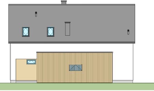 Graficzne opracowanie rzutów poglądowych widocznych na karcie projektu zostało wykonane przez Extradom.pl. Prezentowane przez Extradom.pl wizualizacje wykonane zostały przez autora projektu i należy poczytywać je jedynie za przykład i propozycję wykończenia, wizję architektoniczną autora projektu. Ostateczne wykończenie budynku może nastąpić na wiele sposobów. Szczegółowe rozwiązania zastosowane w oferowanej dokumentacji - w tym również ilość, lokalizacje i wygląd okien, drzwi, kominów - mogą w niewielkim stopniu różnić się od prezentowanej wizualizacji budynku.