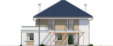 Graficzne opracowanie rzutów poglądowych widocznych na karcie projektu zostało wykonane przez Extradom.pl. Prezentowane przez Extradom.pl wizualizacje wykonane zostały przez autora projektu i należy poczytywać je jedynie za przykład i propozycję wykończenia, wizję architektoniczną autora projektu. Ostateczne wykończenie budynku może nastąpić na wiele sposobów. Szczegółowe rozwiązania zastosowane w oferowanej dokumentacji - w tym również ilość, lokalizacje i wygląd okien, drzwi, kominów - mogą w niewielkim stopniu różnić się od prezentowanej wizualizacji budynku.