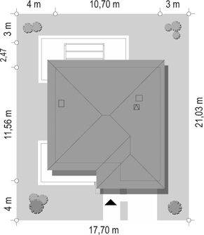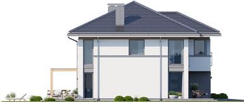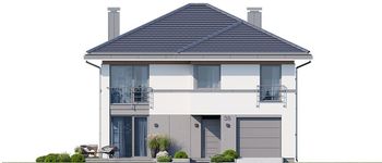 Graficzne opracowanie rzutów poglądowych widocznych na karcie projektu zostało wykonane przez Extradom.pl. Prezentowane przez Extradom.pl wizualizacje wykonane zostały przez autora projektu i należy poczytywać je jedynie za przykład i propozycję wykończenia, wizję architektoniczną autora projektu. Ostateczne wykończenie budynku może nastąpić na wiele sposobów. Szczegółowe rozwiązania zastosowane w oferowanej dokumentacji - w tym również ilość, lokalizacje i wygląd okien, drzwi, kominów - mogą w niewielkim stopniu różnić się od prezentowanej wizualizacji budynku.