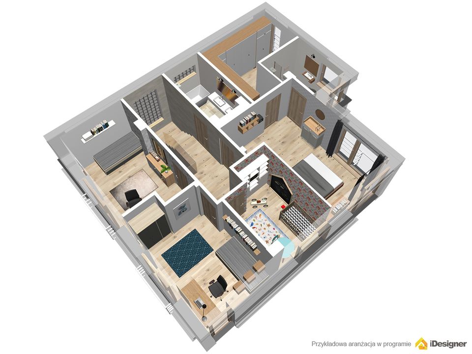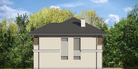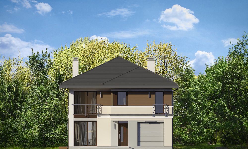 Graficzne opracowanie rzutów poglądowych widocznych na karcie projektu zostało wykonane przez Extradom.pl. Prezentowane przez Extradom.pl wizualizacje wykonane zostały przez autora projektu i należy poczytywać je jedynie za przykład i propozycję wykończenia, wizję architektoniczną autora projektu. Ostateczne wykończenie budynku może nastąpić na wiele sposobów. Szczegółowe rozwiązania zastosowane w oferowanej dokumentacji - w tym również ilość, lokalizacje i wygląd okien, drzwi, kominów - mogą w niewielkim stopniu różnić się od prezentowanej wizualizacji budynku.