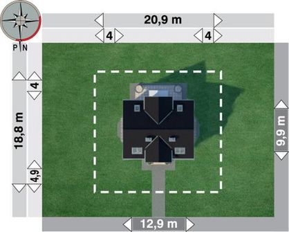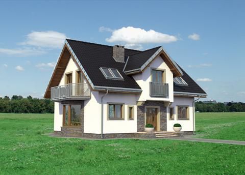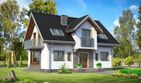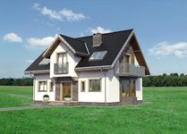 Graficzne opracowanie rzutów poglądowych widocznych na karcie projektu zostało wykonane przez Extradom.pl. Prezentowane przez Extradom.pl wizualizacje wykonane zostały przez autora projektu i należy poczytywać je jedynie za przykład i propozycję wykończenia, wizję architektoniczną autora projektu. Ostateczne wykończenie budynku może nastąpić na wiele sposobów. Szczegółowe rozwiązania zastosowane w oferowanej dokumentacji - w tym również ilość, lokalizacje i wygląd okien, drzwi, kominów - mogą w niewielkim stopniu różnić się od prezentowanej wizualizacji budynku.
