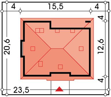 Graficzne opracowanie rzutów poglądowych widocznych na karcie projektu zostało wykonane przez Extradom.pl. Prezentowane przez Extradom.pl wizualizacje wykonane zostały przez autora projektu i należy poczytywać je jedynie za przykład i propozycję wykończenia, wizję architektoniczną autora projektu. Ostateczne wykończenie budynku może nastąpić na wiele sposobów. Szczegółowe rozwiązania zastosowane w oferowanej dokumentacji - w tym również ilość, lokalizacje i wygląd okien, drzwi, kominów - mogą w niewielkim stopniu różnić się od prezentowanej wizualizacji budynku.