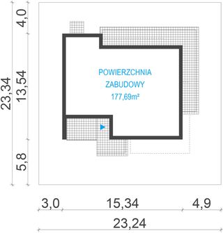 Graficzne opracowanie rzutów poglądowych widocznych na karcie projektu zostało wykonane przez Extradom.pl. Prezentowane przez Extradom.pl wizualizacje wykonane zostały przez autora projektu i należy poczytywać je jedynie za przykład i propozycję wykończenia, wizję architektoniczną autora projektu. Ostateczne wykończenie budynku może nastąpić na wiele sposobów. Szczegółowe rozwiązania zastosowane w oferowanej dokumentacji - w tym również ilość, lokalizacje i wygląd okien, drzwi, kominów - mogą w niewielkim stopniu różnić się od prezentowanej wizualizacji budynku.