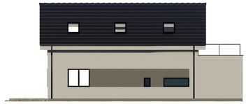 Graficzne opracowanie rzutów poglądowych widocznych na karcie projektu zostało wykonane przez Extradom.pl. Prezentowane przez Extradom.pl wizualizacje wykonane zostały przez autora projektu i należy poczytywać je jedynie za przykład i propozycję wykończenia, wizję architektoniczną autora projektu. Ostateczne wykończenie budynku może nastąpić na wiele sposobów. Szczegółowe rozwiązania zastosowane w oferowanej dokumentacji - w tym również ilość, lokalizacje i wygląd okien, drzwi, kominów - mogą w niewielkim stopniu różnić się od prezentowanej wizualizacji budynku.
