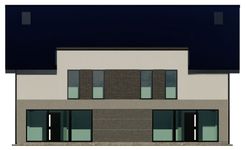 Graficzne opracowanie rzutów poglądowych widocznych na karcie projektu zostało wykonane przez Extradom.pl. Prezentowane przez Extradom.pl wizualizacje wykonane zostały przez autora projektu i należy poczytywać je jedynie za przykład i propozycję wykończenia, wizję architektoniczną autora projektu. Ostateczne wykończenie budynku może nastąpić na wiele sposobów. Szczegółowe rozwiązania zastosowane w oferowanej dokumentacji - w tym również ilość, lokalizacje i wygląd okien, drzwi, kominów - mogą w niewielkim stopniu różnić się od prezentowanej wizualizacji budynku.