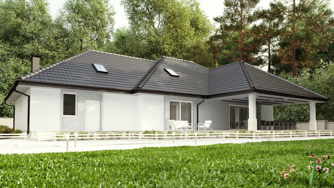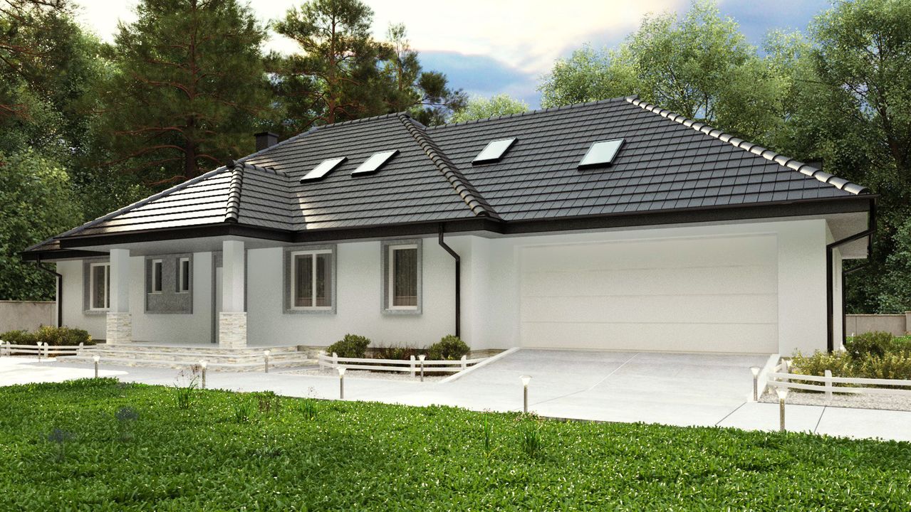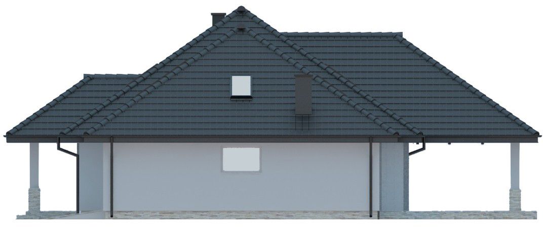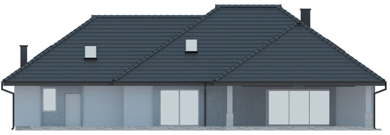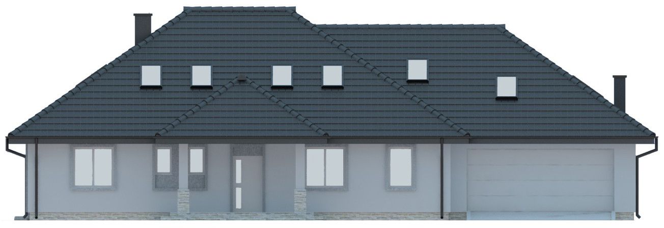 Graficzne opracowanie rzutów poglądowych widocznych na karcie projektu zostało wykonane przez Extradom.pl. Prezentowane przez Extradom.pl wizualizacje wykonane zostały przez autora projektu i należy poczytywać je jedynie za przykład i propozycję wykończenia, wizję architektoniczną autora projektu. Ostateczne wykończenie budynku może nastąpić na wiele sposobów. Szczegółowe rozwiązania zastosowane w oferowanej dokumentacji - w tym również ilość, lokalizacje i wygląd okien, drzwi, kominów - mogą w niewielkim stopniu różnić się od prezentowanej wizualizacji budynku.
