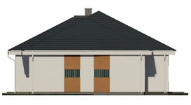 Graficzne opracowanie rzutów poglądowych widocznych na karcie projektu zostało wykonane przez Extradom.pl. Prezentowane przez Extradom.pl wizualizacje wykonane zostały przez autora projektu i należy poczytywać je jedynie za przykład i propozycję wykończenia, wizję architektoniczną autora projektu. Ostateczne wykończenie budynku może nastąpić na wiele sposobów. Szczegółowe rozwiązania zastosowane w oferowanej dokumentacji - w tym również ilość, lokalizacje i wygląd okien, drzwi, kominów - mogą w niewielkim stopniu różnić się od prezentowanej wizualizacji budynku.