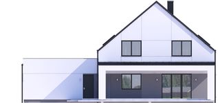 Graficzne opracowanie rzutów poglądowych widocznych na karcie projektu zostało wykonane przez Extradom.pl. Prezentowane przez Extradom.pl wizualizacje wykonane zostały przez autora projektu i należy poczytywać je jedynie za przykład i propozycję wykończenia, wizję architektoniczną autora projektu. Ostateczne wykończenie budynku może nastąpić na wiele sposobów. Szczegółowe rozwiązania zastosowane w oferowanej dokumentacji - w tym również ilość, lokalizacje i wygląd okien, drzwi, kominów - mogą w niewielkim stopniu różnić się od prezentowanej wizualizacji budynku.