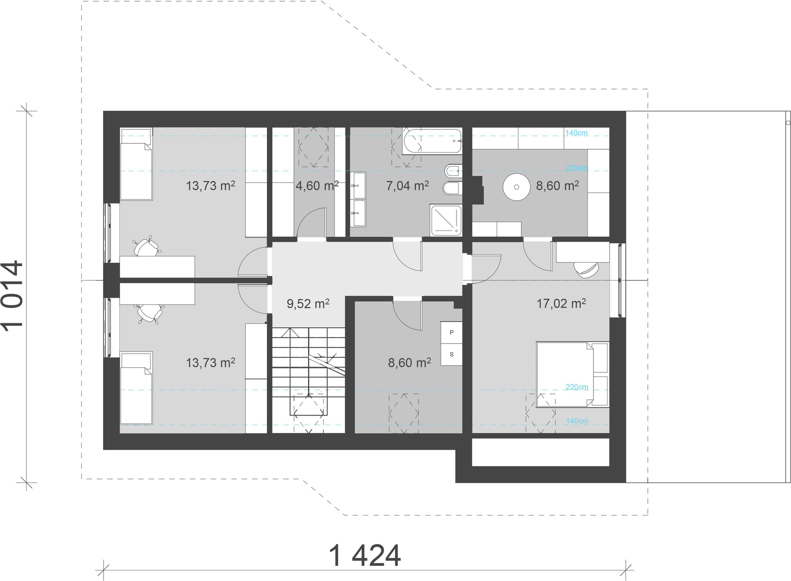 Poddasze to prywatna oaza domowników, zaprojektowana z myślą o odpoczynku i regeneracji.