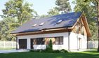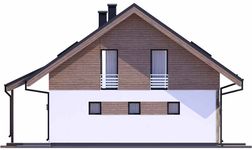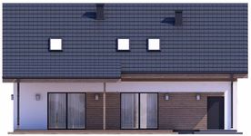 Graficzne opracowanie rzutów poglądowych widocznych na karcie projektu zostało wykonane przez Extradom.pl. Prezentowane przez Extradom.pl wizualizacje wykonane zostały przez autora projektu i należy poczytywać je jedynie za przykład i propozycję wykończenia, wizję architektoniczną autora projektu. Ostateczne wykończenie budynku może nastąpić na wiele sposobów. Szczegółowe rozwiązania zastosowane w oferowanej dokumentacji - w tym również ilość, lokalizacje i wygląd okien, drzwi, kominów - mogą w niewielkim stopniu różnić się od prezentowanej wizualizacji budynku.