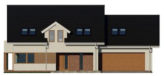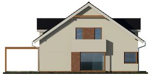 Graficzne opracowanie rzutów poglądowych widocznych na karcie projektu zostało wykonane przez Extradom.pl. Prezentowane przez Extradom.pl wizualizacje wykonane zostały przez autora projektu i należy poczytywać je jedynie za przykład i propozycję wykończenia, wizję architektoniczną autora projektu. Ostateczne wykończenie budynku może nastąpić na wiele sposobów. Szczegółowe rozwiązania zastosowane w oferowanej dokumentacji - w tym również ilość, lokalizacje i wygląd okien, drzwi, kominów - mogą w niewielkim stopniu różnić się od prezentowanej wizualizacji budynku.