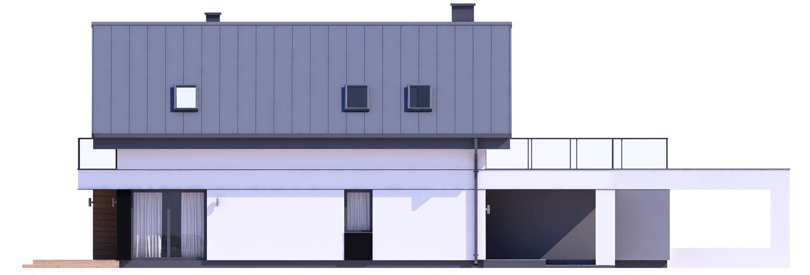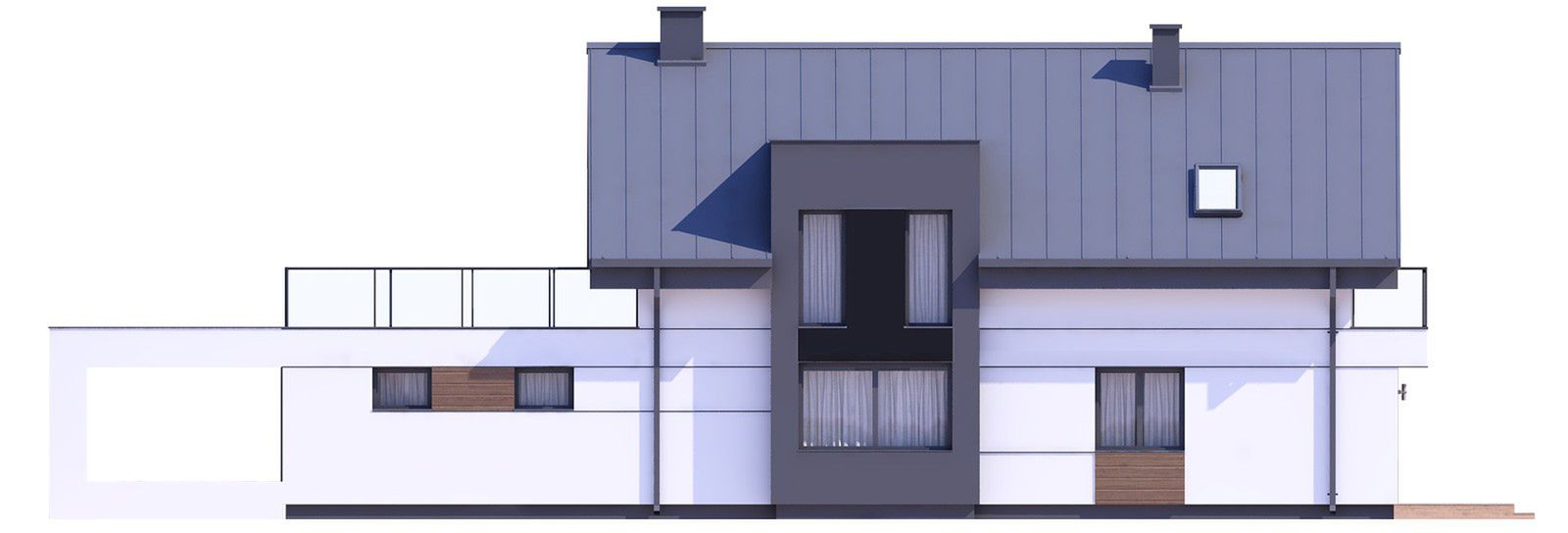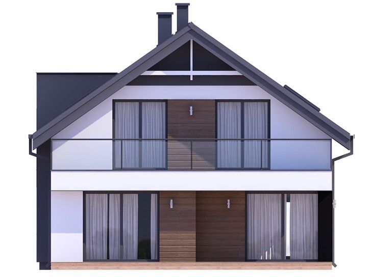 Graficzne opracowanie rzutów poglądowych widocznych na karcie projektu zostało wykonane przez Extradom.pl. Prezentowane przez Extradom.pl wizualizacje wykonane zostały przez autora projektu i należy poczytywać je jedynie za przykład i propozycję wykończenia, wizję architektoniczną autora projektu. Ostateczne wykończenie budynku może nastąpić na wiele sposobów. Szczegółowe rozwiązania zastosowane w oferowanej dokumentacji - w tym również ilość, lokalizacje i wygląd okien, drzwi, kominów - mogą w niewielkim stopniu różnić się od prezentowanej wizualizacji budynku.