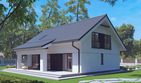 Graficzne opracowanie rzutów poglądowych widocznych na karcie projektu zostało wykonane przez Extradom.pl. Prezentowane przez Extradom.pl wizualizacje wykonane zostały przez autora projektu i należy poczytywać je jedynie za przykład i propozycję wykończenia, wizję architektoniczną autora projektu. Ostateczne wykończenie budynku może nastąpić na wiele sposobów. Szczegółowe rozwiązania zastosowane w oferowanej dokumentacji - w tym również ilość, lokalizacje i wygląd okien, drzwi, kominów - mogą w niewielkim stopniu różnić się od prezentowanej wizualizacji budynku.