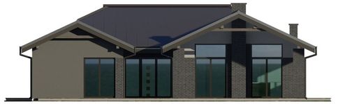 Graficzne opracowanie rzutów poglądowych widocznych na karcie projektu zostało wykonane przez Extradom.pl. Prezentowane przez Extradom.pl wizualizacje wykonane zostały przez autora projektu i należy poczytywać je jedynie za przykład i propozycję wykończenia, wizję architektoniczną autora projektu. Ostateczne wykończenie budynku może nastąpić na wiele sposobów. Szczegółowe rozwiązania zastosowane w oferowanej dokumentacji - w tym również ilość, lokalizacje i wygląd okien, drzwi, kominów - mogą w niewielkim stopniu różnić się od prezentowanej wizualizacji budynku.