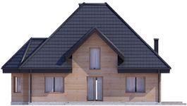 Graficzne opracowanie rzutów poglądowych widocznych na karcie projektu zostało wykonane przez Extradom.pl. Prezentowane przez Extradom.pl wizualizacje wykonane zostały przez autora projektu i należy poczytywać je jedynie za przykład i propozycję wykończenia, wizję architektoniczną autora projektu. Ostateczne wykończenie budynku może nastąpić na wiele sposobów. Szczegółowe rozwiązania zastosowane w oferowanej dokumentacji - w tym również ilość, lokalizacje i wygląd okien, drzwi, kominów - mogą w niewielkim stopniu różnić się od prezentowanej wizualizacji budynku.