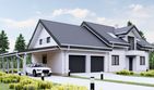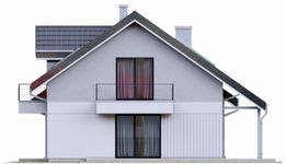 Graficzne opracowanie rzutów poglądowych widocznych na karcie projektu zostało wykonane przez Extradom.pl. Prezentowane przez Extradom.pl wizualizacje wykonane zostały przez autora projektu i należy poczytywać je jedynie za przykład i propozycję wykończenia, wizję architektoniczną autora projektu. Ostateczne wykończenie budynku może nastąpić na wiele sposobów. Szczegółowe rozwiązania zastosowane w oferowanej dokumentacji - w tym również ilość, lokalizacje i wygląd okien, drzwi, kominów - mogą w niewielkim stopniu różnić się od prezentowanej wizualizacji budynku.
