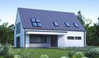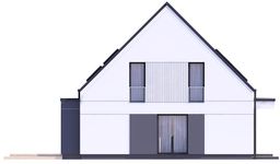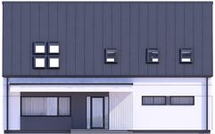 Graficzne opracowanie rzutów poglądowych widocznych na karcie projektu zostało wykonane przez Extradom.pl. Prezentowane przez Extradom.pl wizualizacje wykonane zostały przez autora projektu i należy poczytywać je jedynie za przykład i propozycję wykończenia, wizję architektoniczną autora projektu. Ostateczne wykończenie budynku może nastąpić na wiele sposobów. Szczegółowe rozwiązania zastosowane w oferowanej dokumentacji - w tym również ilość, lokalizacje i wygląd okien, drzwi, kominów - mogą w niewielkim stopniu różnić się od prezentowanej wizualizacji budynku.