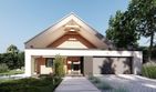 Graficzne opracowanie rzutów poglądowych widocznych na karcie projektu zostało wykonane przez Extradom.pl. Prezentowane przez Extradom.pl wizualizacje wykonane zostały przez autora projektu i należy poczytywać je jedynie za przykład i propozycję wykończenia, wizję architektoniczną autora projektu. Ostateczne wykończenie budynku może nastąpić na wiele sposobów. Szczegółowe rozwiązania zastosowane w oferowanej dokumentacji - w tym również ilość, lokalizacje i wygląd okien, drzwi, kominów - mogą w niewielkim stopniu różnić się od prezentowanej wizualizacji budynku.