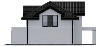 Graficzne opracowanie rzutów poglądowych widocznych na karcie projektu zostało wykonane przez Extradom.pl. Prezentowane przez Extradom.pl wizualizacje wykonane zostały przez autora projektu i należy poczytywać je jedynie za przykład i propozycję wykończenia, wizję architektoniczną autora projektu. Ostateczne wykończenie budynku może nastąpić na wiele sposobów. Szczegółowe rozwiązania zastosowane w oferowanej dokumentacji - w tym również ilość, lokalizacje i wygląd okien, drzwi, kominów - mogą w niewielkim stopniu różnić się od prezentowanej wizualizacji budynku.