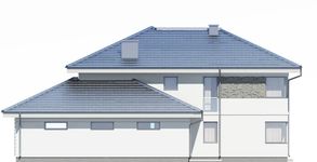Graficzne opracowanie rzutów poglądowych widocznych na karcie projektu zostało wykonane przez Extradom.pl. Prezentowane przez Extradom.pl wizualizacje wykonane zostały przez autora projektu i należy poczytywać je jedynie za przykład i propozycję wykończenia, wizję architektoniczną autora projektu. Ostateczne wykończenie budynku może nastąpić na wiele sposobów. Szczegółowe rozwiązania zastosowane w oferowanej dokumentacji - w tym również ilość, lokalizacje i wygląd okien, drzwi, kominów - mogą w niewielkim stopniu różnić się od prezentowanej wizualizacji budynku.
