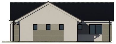 Graficzne opracowanie rzutów poglądowych widocznych na karcie projektu zostało wykonane przez Extradom.pl. Prezentowane przez Extradom.pl wizualizacje wykonane zostały przez autora projektu i należy poczytywać je jedynie za przykład i propozycję wykończenia, wizję architektoniczną autora projektu. Ostateczne wykończenie budynku może nastąpić na wiele sposobów. Szczegółowe rozwiązania zastosowane w oferowanej dokumentacji - w tym również ilość, lokalizacje i wygląd okien, drzwi, kominów - mogą w niewielkim stopniu różnić się od prezentowanej wizualizacji budynku.