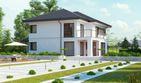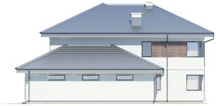 Graficzne opracowanie rzutów poglądowych widocznych na karcie projektu zostało wykonane przez Extradom.pl. Prezentowane przez Extradom.pl wizualizacje wykonane zostały przez autora projektu i należy poczytywać je jedynie za przykład i propozycję wykończenia, wizję architektoniczną autora projektu. Ostateczne wykończenie budynku może nastąpić na wiele sposobów. Szczegółowe rozwiązania zastosowane w oferowanej dokumentacji - w tym również ilość, lokalizacje i wygląd okien, drzwi, kominów - mogą w niewielkim stopniu różnić się od prezentowanej wizualizacji budynku.