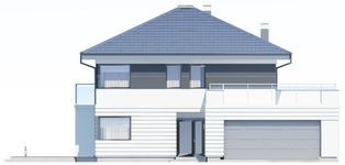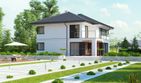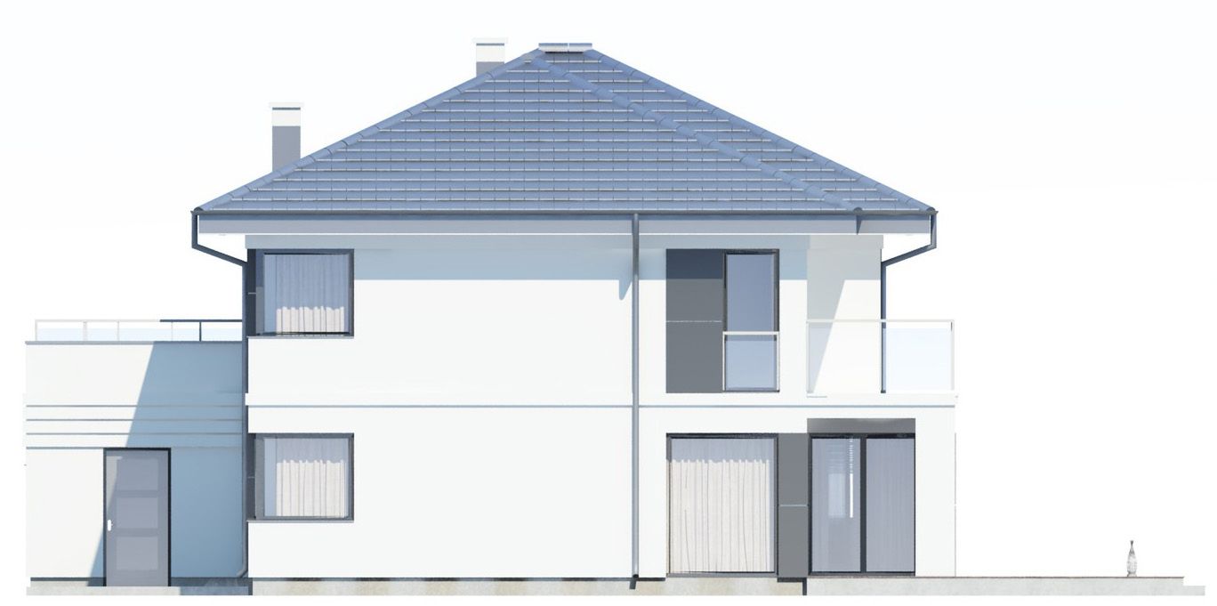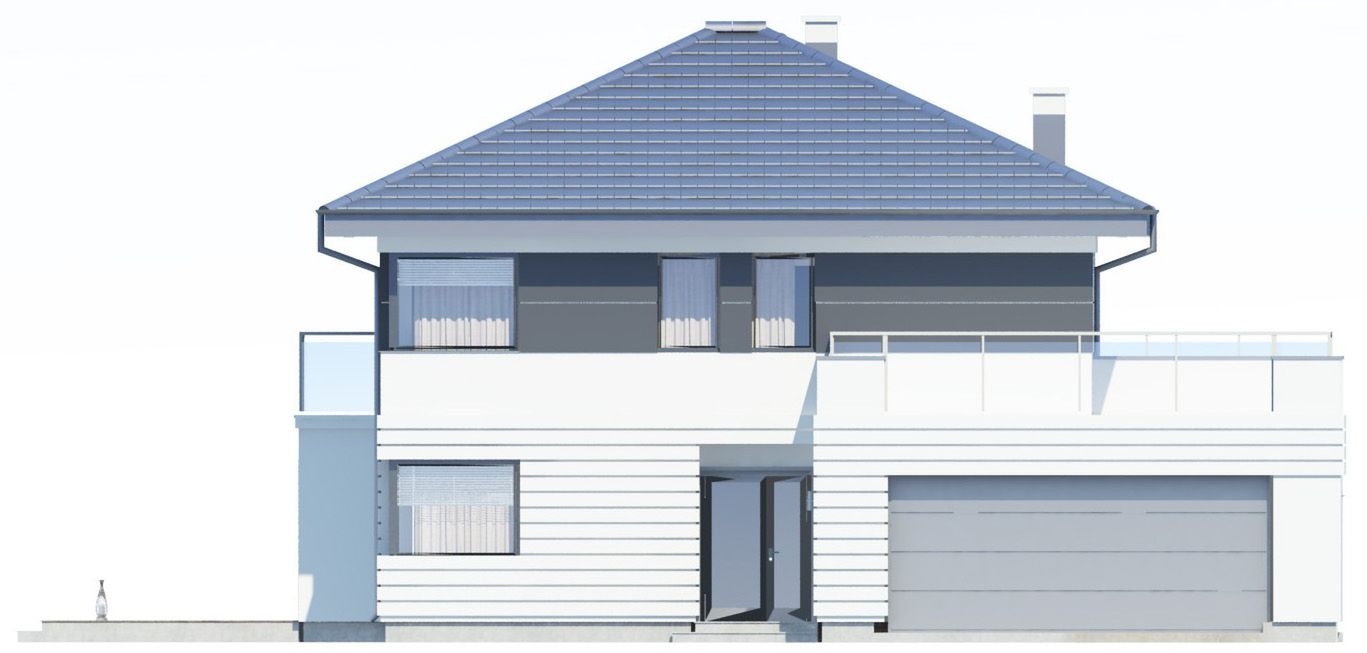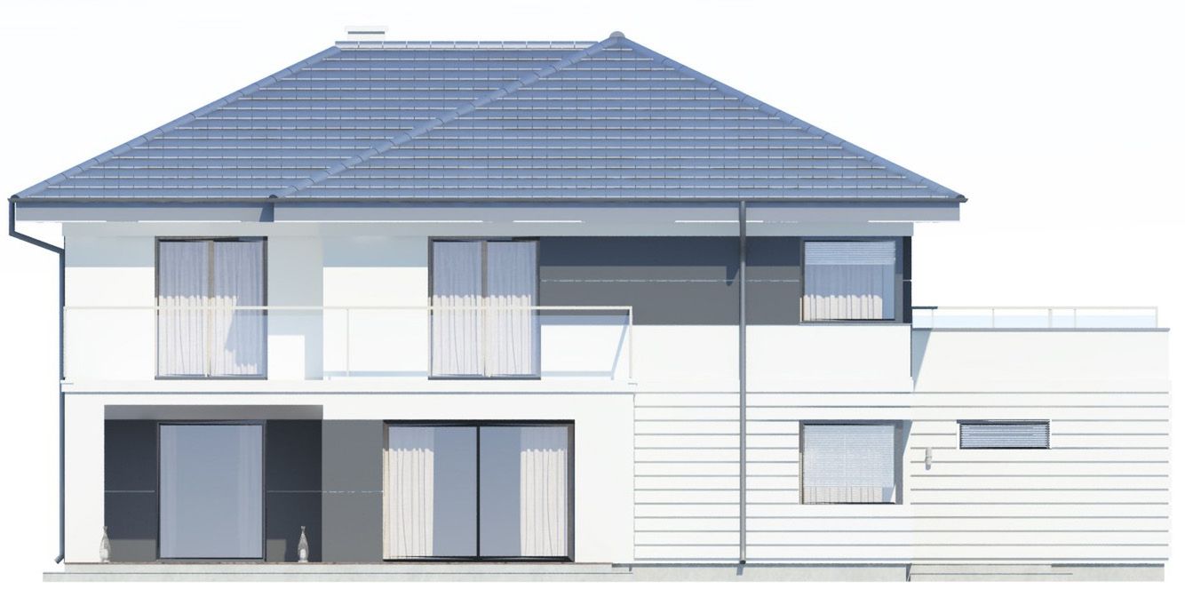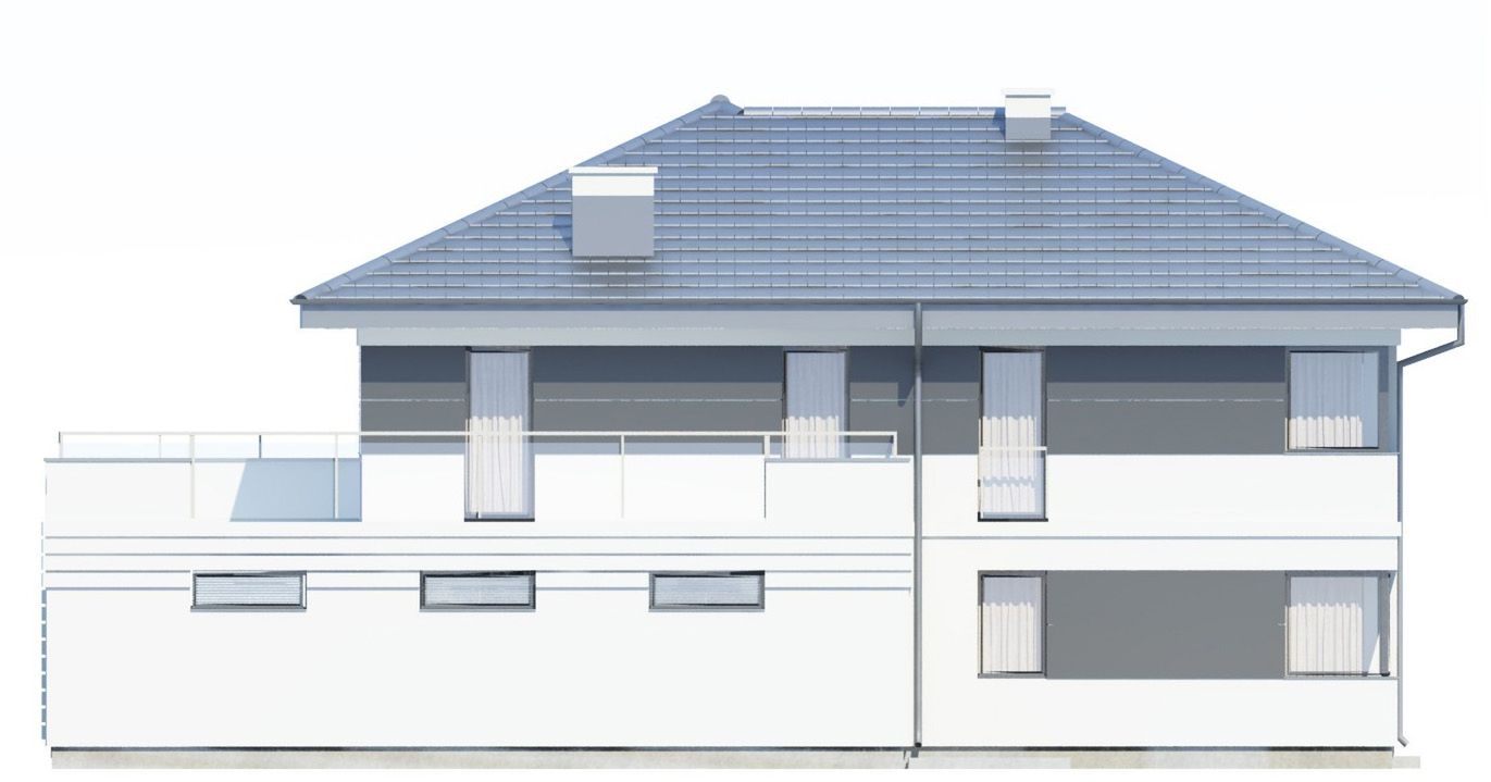 Graficzne opracowanie rzutów poglądowych widocznych na karcie projektu zostało wykonane przez Extradom.pl. Prezentowane przez Extradom.pl wizualizacje wykonane zostały przez autora projektu i należy poczytywać je jedynie za przykład i propozycję wykończenia, wizję architektoniczną autora projektu. Ostateczne wykończenie budynku może nastąpić na wiele sposobów. Szczegółowe rozwiązania zastosowane w oferowanej dokumentacji - w tym również ilość, lokalizacje i wygląd okien, drzwi, kominów - mogą w niewielkim stopniu różnić się od prezentowanej wizualizacji budynku.