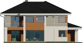 Graficzne opracowanie rzutów poglądowych widocznych na karcie projektu zostało wykonane przez Extradom.pl. Prezentowane przez Extradom.pl wizualizacje wykonane zostały przez autora projektu i należy poczytywać je jedynie za przykład i propozycję wykończenia, wizję architektoniczną autora projektu. Ostateczne wykończenie budynku może nastąpić na wiele sposobów. Szczegółowe rozwiązania zastosowane w oferowanej dokumentacji - w tym również ilość, lokalizacje i wygląd okien, drzwi, kominów - mogą w niewielkim stopniu różnić się od prezentowanej wizualizacji budynku.