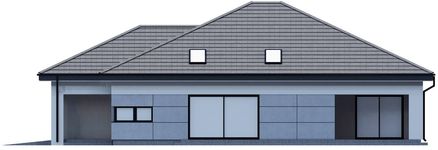 Graficzne opracowanie rzutów poglądowych widocznych na karcie projektu zostało wykonane przez Extradom.pl. Prezentowane przez Extradom.pl wizualizacje wykonane zostały przez autora projektu i należy poczytywać je jedynie za przykład i propozycję wykończenia, wizję architektoniczną autora projektu. Ostateczne wykończenie budynku może nastąpić na wiele sposobów. Szczegółowe rozwiązania zastosowane w oferowanej dokumentacji - w tym również ilość, lokalizacje i wygląd okien, drzwi, kominów - mogą w niewielkim stopniu różnić się od prezentowanej wizualizacji budynku.