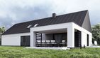 Graficzne opracowanie rzutów poglądowych widocznych na karcie projektu zostało wykonane przez Extradom.pl. Prezentowane przez Extradom.pl wizualizacje wykonane zostały przez autora projektu i należy poczytywać je jedynie za przykład i propozycję wykończenia, wizję architektoniczną autora projektu. Ostateczne wykończenie budynku może nastąpić na wiele sposobów. Szczegółowe rozwiązania zastosowane w oferowanej dokumentacji - w tym również ilość, lokalizacje i wygląd okien, drzwi, kominów - mogą w niewielkim stopniu różnić się od prezentowanej wizualizacji budynku.