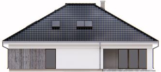 Graficzne opracowanie rzutów poglądowych widocznych na karcie projektu zostało wykonane przez Extradom.pl. Prezentowane przez Extradom.pl wizualizacje wykonane zostały przez autora projektu i należy poczytywać je jedynie za przykład i propozycję wykończenia, wizję architektoniczną autora projektu. Ostateczne wykończenie budynku może nastąpić na wiele sposobów. Szczegółowe rozwiązania zastosowane w oferowanej dokumentacji - w tym również ilość, lokalizacje i wygląd okien, drzwi, kominów - mogą w niewielkim stopniu różnić się od prezentowanej wizualizacji budynku.