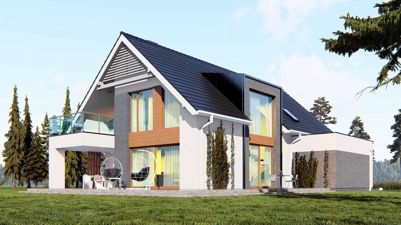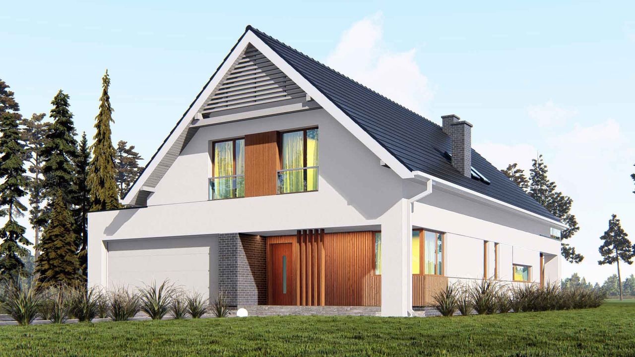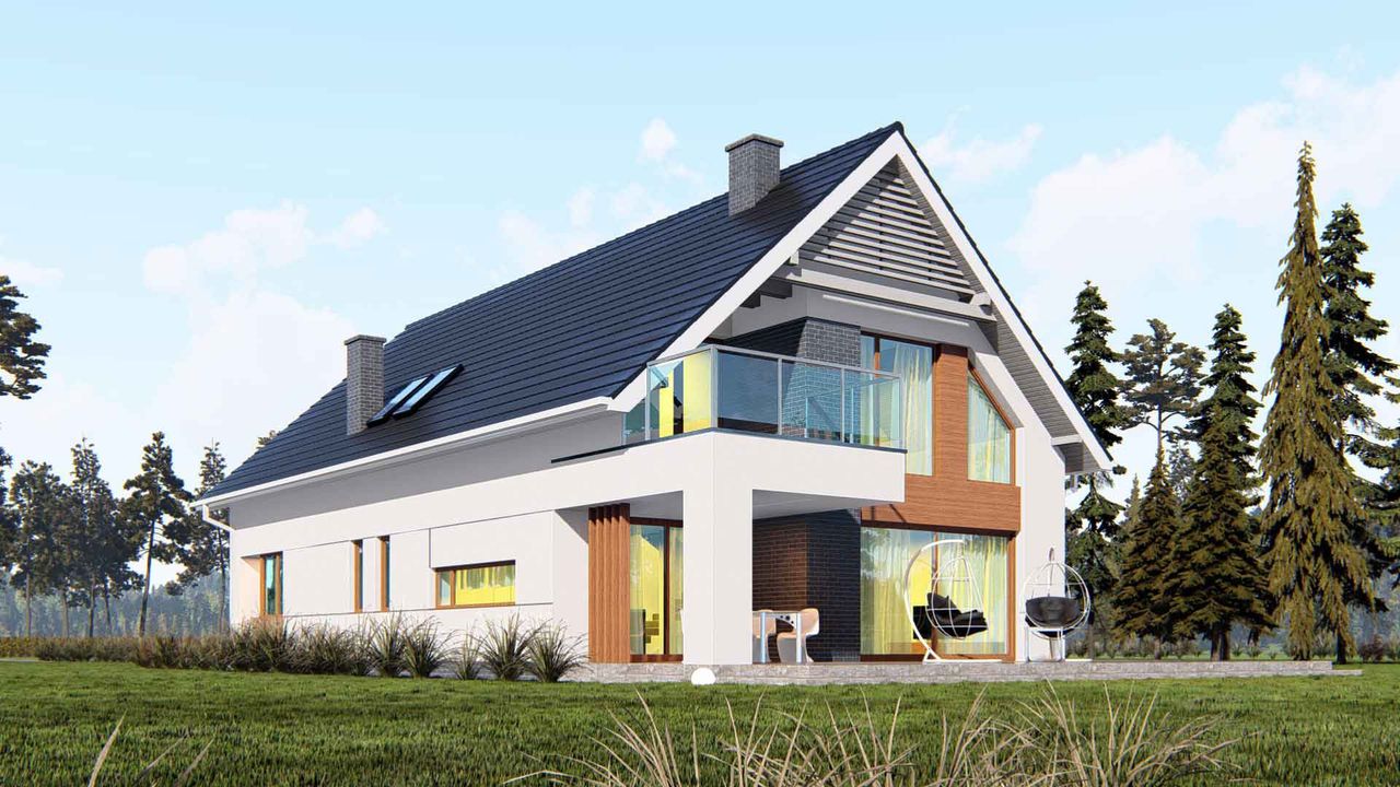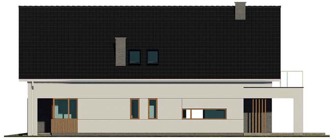 Graficzne opracowanie rzutów poglądowych widocznych na karcie projektu zostało wykonane przez Extradom.pl. Prezentowane przez Extradom.pl wizualizacje wykonane zostały przez autora projektu i należy poczytywać je jedynie za przykład i propozycję wykończenia, wizję architektoniczną autora projektu. Ostateczne wykończenie budynku może nastąpić na wiele sposobów. Szczegółowe rozwiązania zastosowane w oferowanej dokumentacji - w tym również ilość, lokalizacje i wygląd okien, drzwi, kominów - mogą w niewielkim stopniu różnić się od prezentowanej wizualizacji budynku.