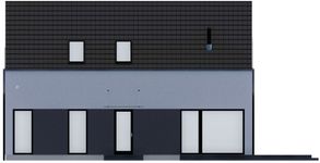 Graficzne opracowanie rzutów poglądowych widocznych na karcie projektu zostało wykonane przez Extradom.pl. Prezentowane przez Extradom.pl wizualizacje wykonane zostały przez autora projektu i należy poczytywać je jedynie za przykład i propozycję wykończenia, wizję architektoniczną autora projektu. Ostateczne wykończenie budynku może nastąpić na wiele sposobów. Szczegółowe rozwiązania zastosowane w oferowanej dokumentacji - w tym również ilość, lokalizacje i wygląd okien, drzwi, kominów - mogą w niewielkim stopniu różnić się od prezentowanej wizualizacji budynku.