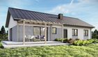 Graficzne opracowanie rzutów poglądowych widocznych na karcie projektu zostało wykonane przez Extradom.pl. Prezentowane przez Extradom.pl wizualizacje wykonane zostały przez autora projektu i należy poczytywać je jedynie za przykład i propozycję wykończenia, wizję architektoniczną autora projektu. Ostateczne wykończenie budynku może nastąpić na wiele sposobów. Szczegółowe rozwiązania zastosowane w oferowanej dokumentacji - w tym również ilość, lokalizacje i wygląd okien, drzwi, kominów - mogą w niewielkim stopniu różnić się od prezentowanej wizualizacji budynku.