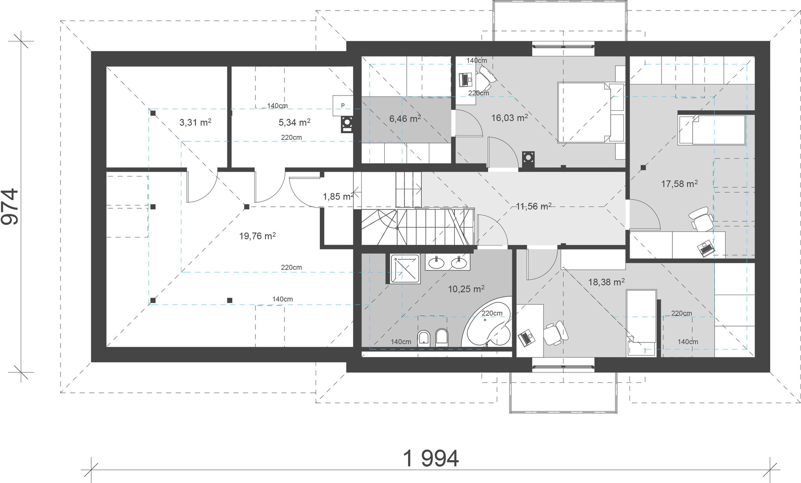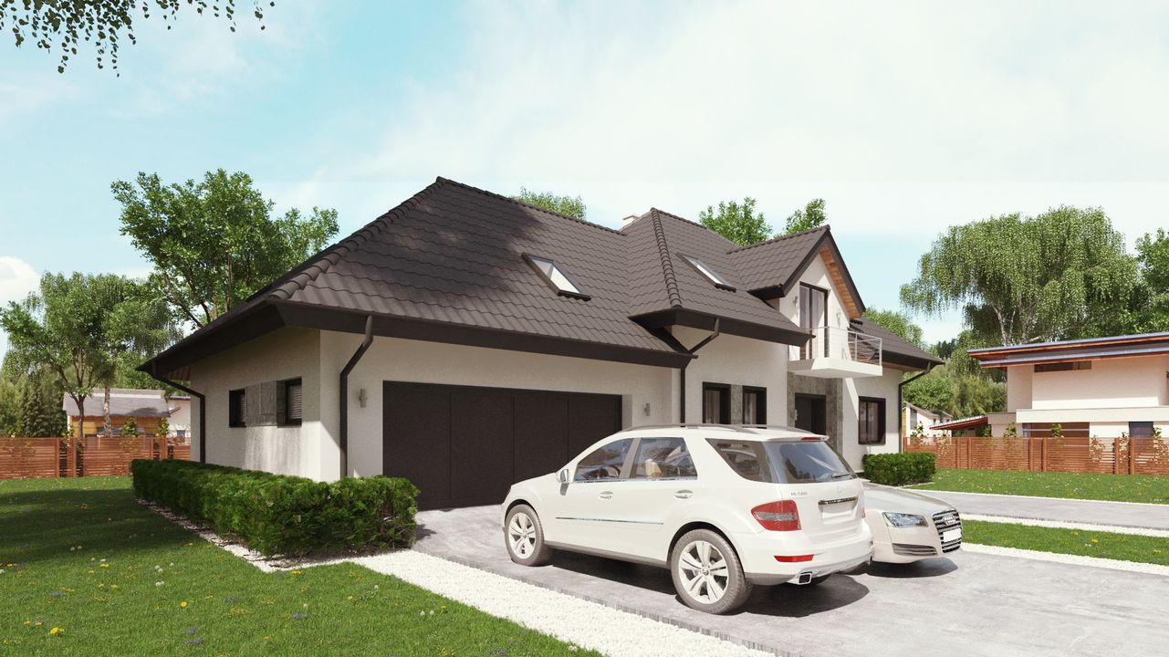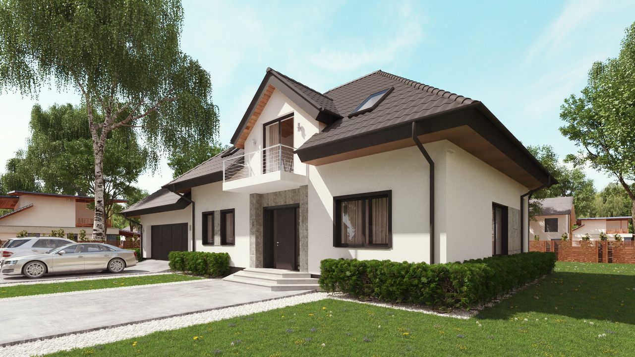Graficzne opracowanie rzutów poglądowych widocznych na karcie projektu zostało wykonane przez Extradom.pl. Prezentowane przez Extradom.pl wizualizacje wykonane zostały przez autora projektu i należy poczytywać je jedynie za przykład i propozycję wykończenia, wizję architektoniczną autora projektu. Ostateczne wykończenie budynku może nastąpić na wiele sposobów. Szczegółowe rozwiązania zastosowane w oferowanej dokumentacji - w tym również ilość, lokalizacje i wygląd okien, drzwi, kominów - mogą w niewielkim stopniu różnić się od prezentowanej wizualizacji budynku.