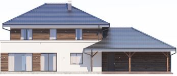 Graficzne opracowanie rzutów poglądowych widocznych na karcie projektu zostało wykonane przez Extradom.pl. Prezentowane przez Extradom.pl wizualizacje wykonane zostały przez autora projektu i należy poczytywać je jedynie za przykład i propozycję wykończenia, wizję architektoniczną autora projektu. Ostateczne wykończenie budynku może nastąpić na wiele sposobów. Szczegółowe rozwiązania zastosowane w oferowanej dokumentacji - w tym również ilość, lokalizacje i wygląd okien, drzwi, kominów - mogą w niewielkim stopniu różnić się od prezentowanej wizualizacji budynku.