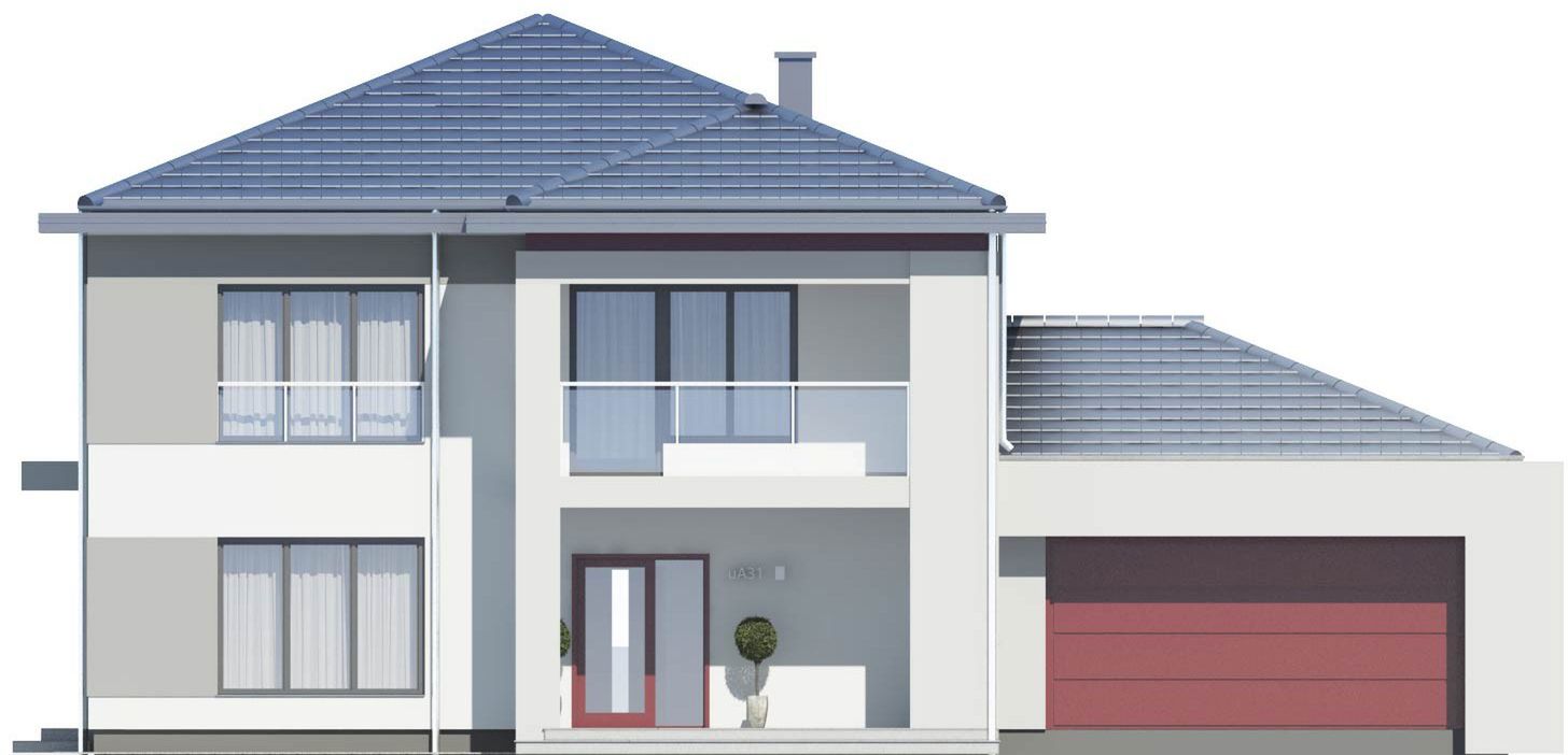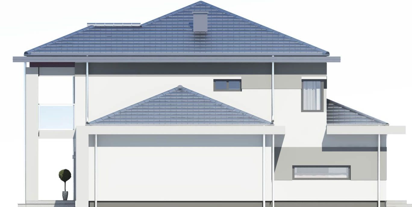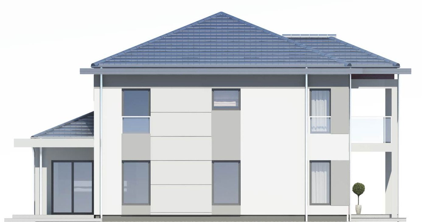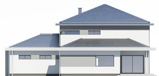 Graficzne opracowanie rzutów poglądowych widocznych na karcie projektu zostało wykonane przez Extradom.pl. Prezentowane przez Extradom.pl wizualizacje wykonane zostały przez autora projektu i należy poczytywać je jedynie za przykład i propozycję wykończenia, wizję architektoniczną autora projektu. Ostateczne wykończenie budynku może nastąpić na wiele sposobów. Szczegółowe rozwiązania zastosowane w oferowanej dokumentacji - w tym również ilość, lokalizacje i wygląd okien, drzwi, kominów - mogą w niewielkim stopniu różnić się od prezentowanej wizualizacji budynku.