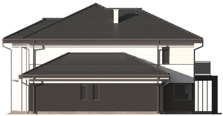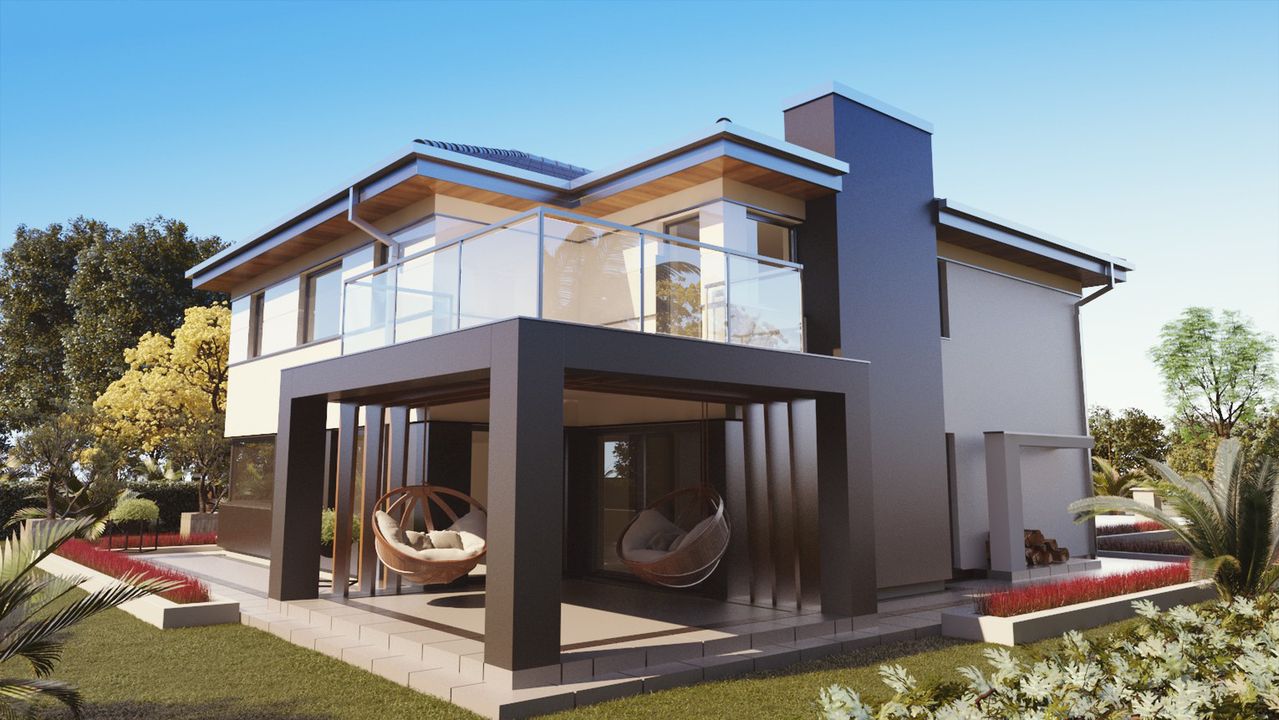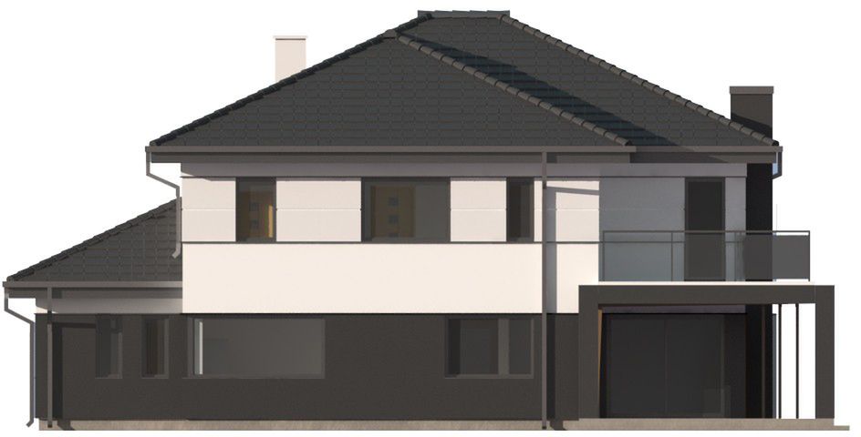 Graficzne opracowanie rzutów poglądowych widocznych na karcie projektu zostało wykonane przez Extradom.pl. Prezentowane przez Extradom.pl wizualizacje wykonane zostały przez autora projektu i należy poczytywać je jedynie za przykład i propozycję wykończenia, wizję architektoniczną autora projektu. Ostateczne wykończenie budynku może nastąpić na wiele sposobów. Szczegółowe rozwiązania zastosowane w oferowanej dokumentacji - w tym również ilość, lokalizacje i wygląd okien, drzwi, kominów - mogą w niewielkim stopniu różnić się od prezentowanej wizualizacji budynku.