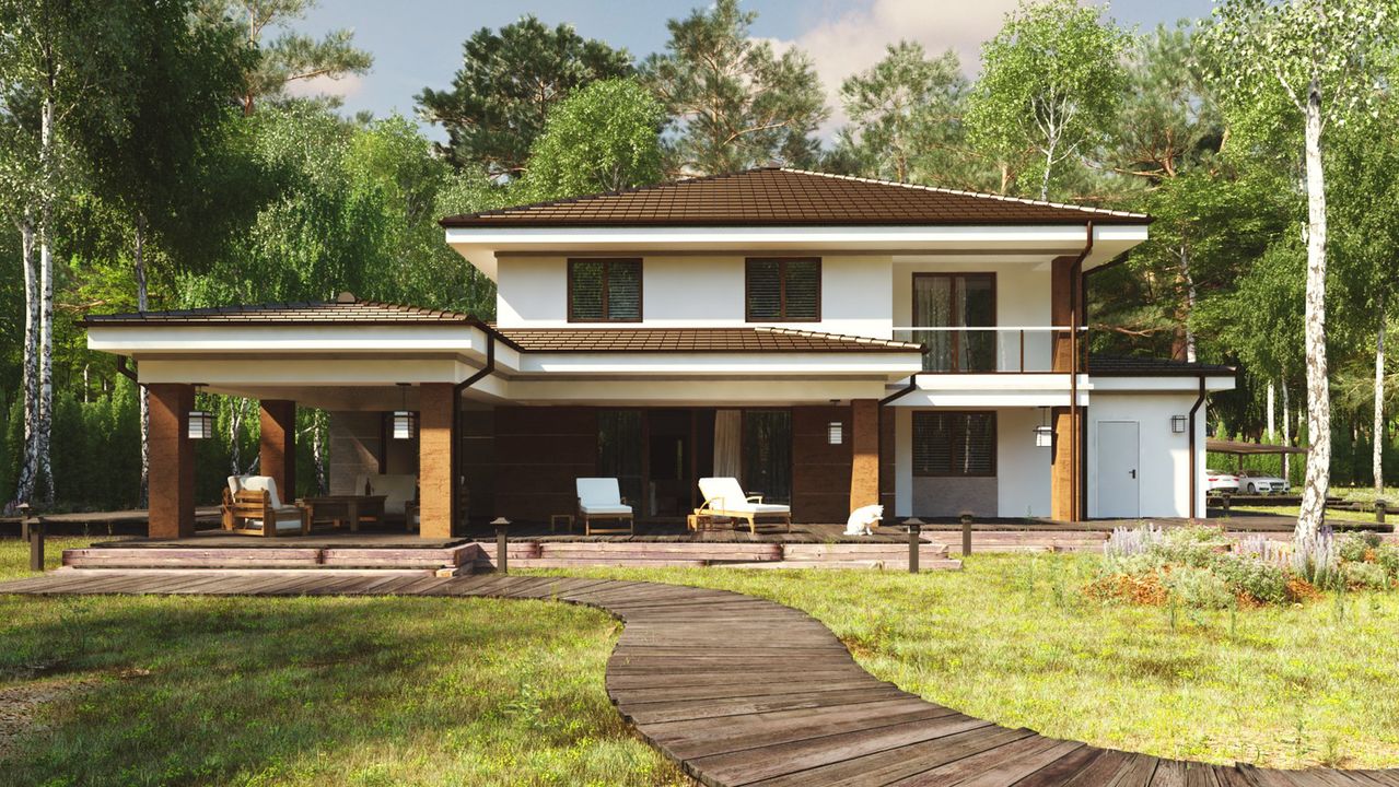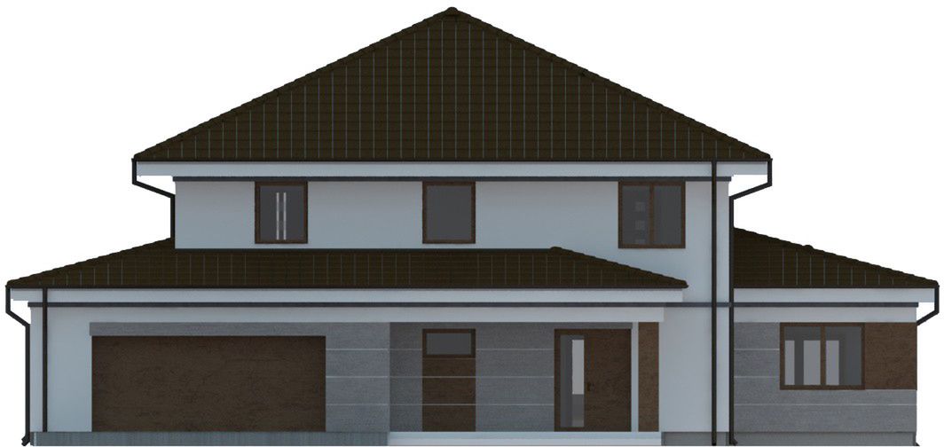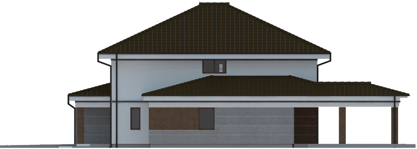 Graficzne opracowanie rzutów poglądowych widocznych na karcie projektu zostało wykonane przez Extradom.pl. Prezentowane przez Extradom.pl wizualizacje wykonane zostały przez autora projektu i należy poczytywać je jedynie za przykład i propozycję wykończenia, wizję architektoniczną autora projektu. Ostateczne wykończenie budynku może nastąpić na wiele sposobów. Szczegółowe rozwiązania zastosowane w oferowanej dokumentacji - w tym również ilość, lokalizacje i wygląd okien, drzwi, kominów - mogą w niewielkim stopniu różnić się od prezentowanej wizualizacji budynku.