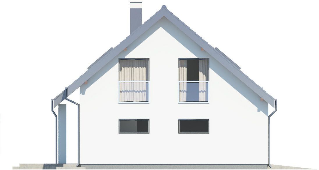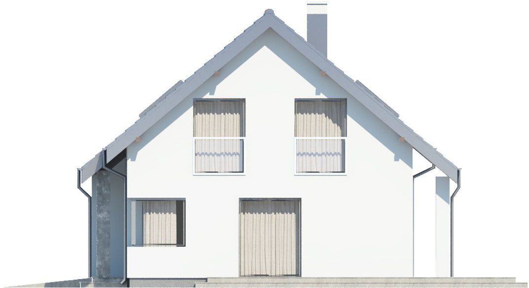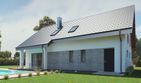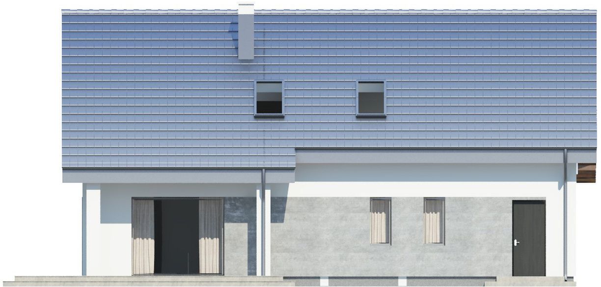 Graficzne opracowanie rzutów poglądowych widocznych na karcie projektu zostało wykonane przez Extradom.pl. Prezentowane przez Extradom.pl wizualizacje wykonane zostały przez autora projektu i należy poczytywać je jedynie za przykład i propozycję wykończenia, wizję architektoniczną autora projektu. Ostateczne wykończenie budynku może nastąpić na wiele sposobów. Szczegółowe rozwiązania zastosowane w oferowanej dokumentacji - w tym również ilość, lokalizacje i wygląd okien, drzwi, kominów - mogą w niewielkim stopniu różnić się od prezentowanej wizualizacji budynku.
