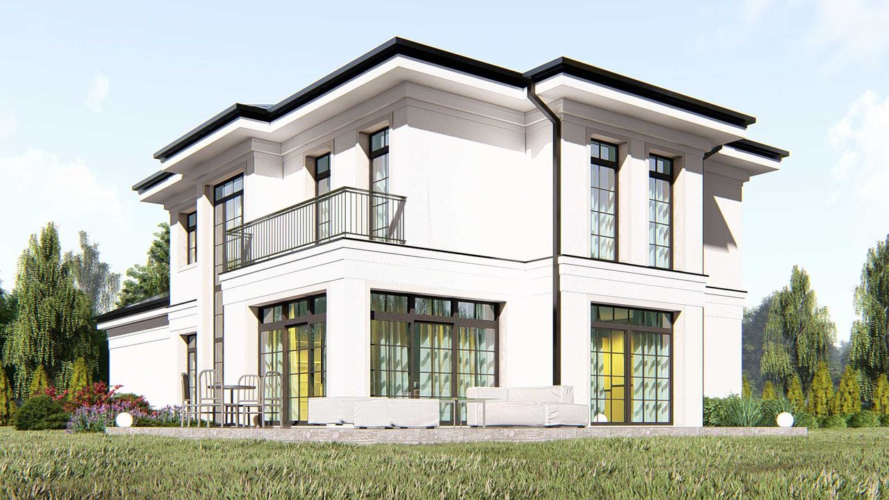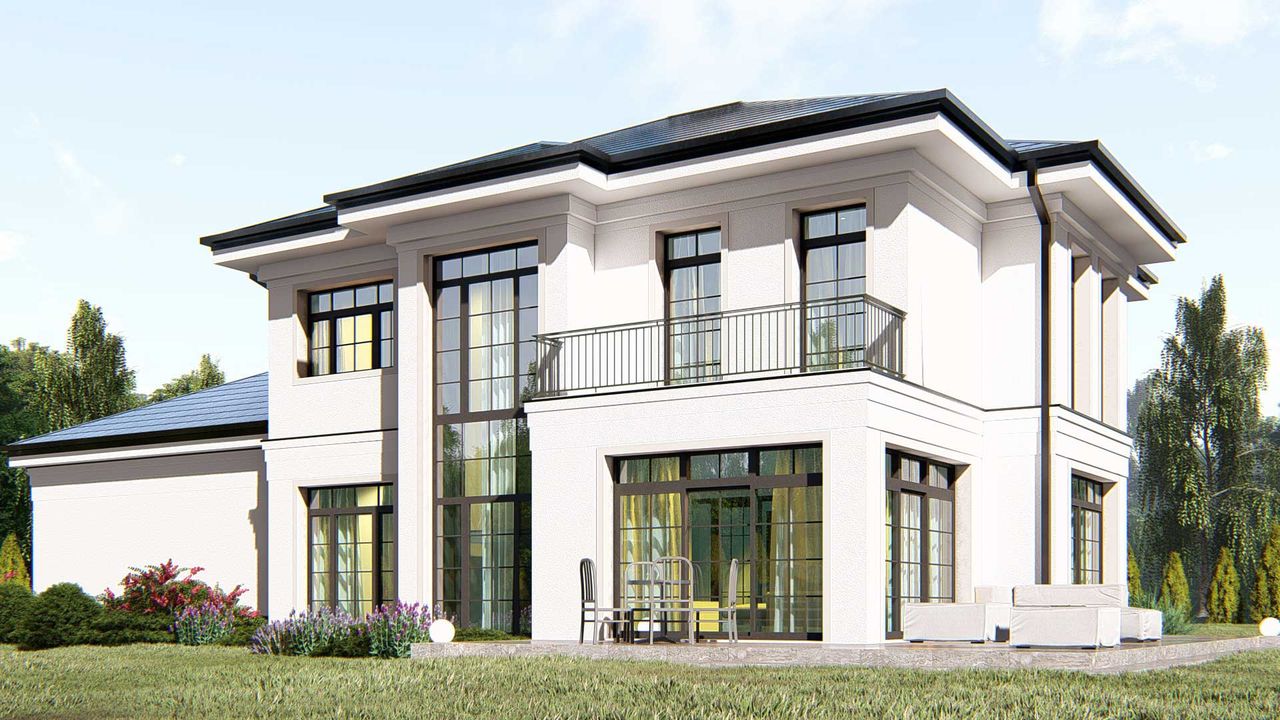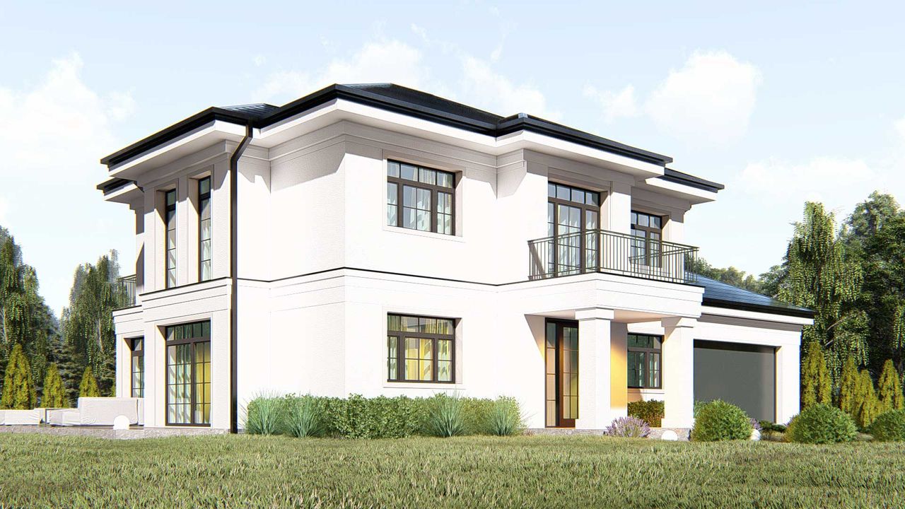 Graficzne opracowanie rzutów poglądowych widocznych na karcie projektu zostało wykonane przez Extradom.pl. Prezentowane przez Extradom.pl wizualizacje wykonane zostały przez autora projektu i należy poczytywać je jedynie za przykład i propozycję wykończenia, wizję architektoniczną autora projektu. Ostateczne wykończenie budynku może nastąpić na wiele sposobów. Szczegółowe rozwiązania zastosowane w oferowanej dokumentacji - w tym również ilość, lokalizacje i wygląd okien, drzwi, kominów - mogą w niewielkim stopniu różnić się od prezentowanej wizualizacji budynku.