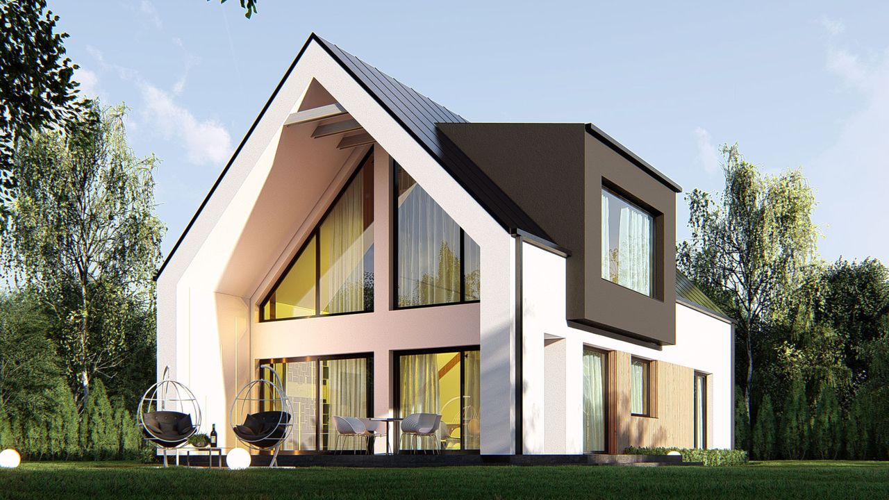 Graficzne opracowanie rzutów poglądowych widocznych na karcie projektu zostało wykonane przez Extradom.pl. Prezentowane przez Extradom.pl wizualizacje wykonane zostały przez autora projektu i należy poczytywać je jedynie za przykład i propozycję wykończenia, wizję architektoniczną autora projektu. Ostateczne wykończenie budynku może nastąpić na wiele sposobów. Szczegółowe rozwiązania zastosowane w oferowanej dokumentacji - w tym również ilość, lokalizacje i wygląd okien, drzwi, kominów - mogą w niewielkim stopniu różnić się od prezentowanej wizualizacji budynku.