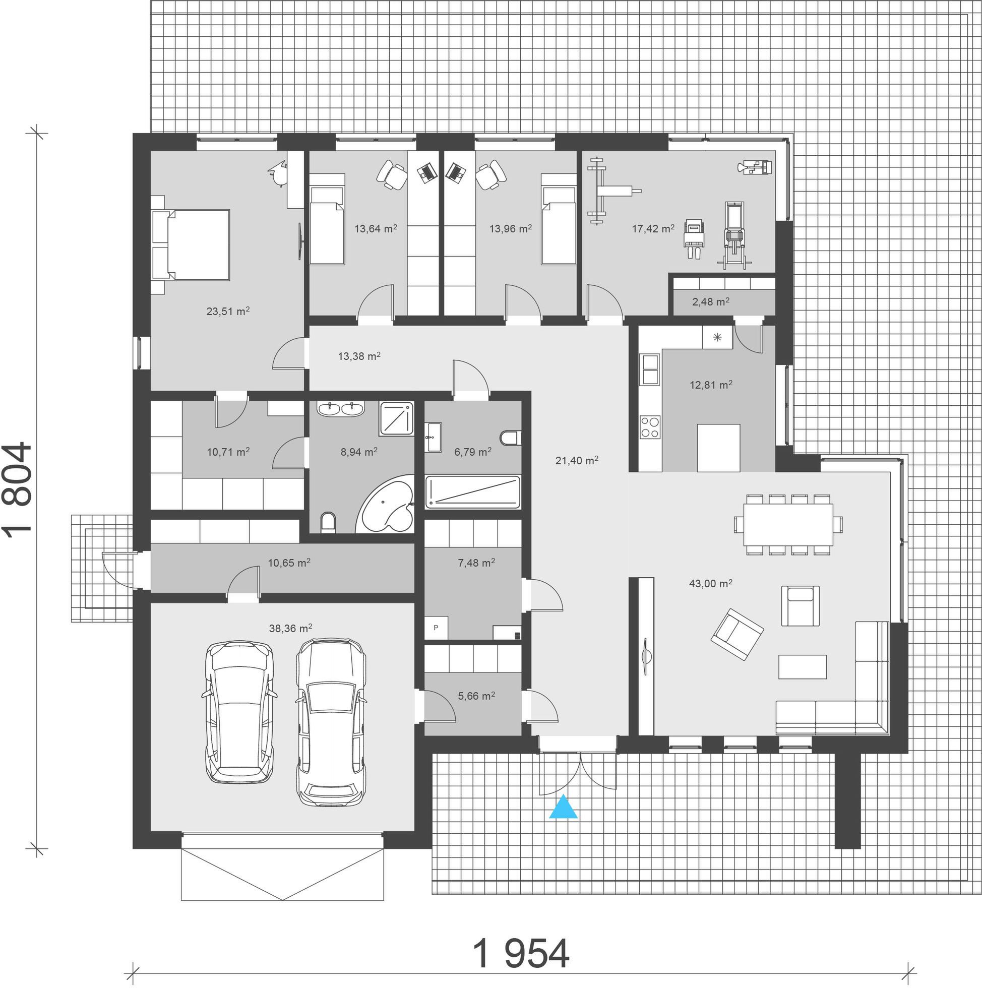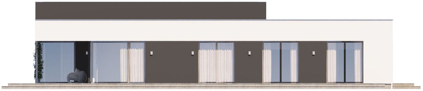 uA36 to luksusowy dom parterowy, idealny dla trzy- a nawet pięcioosobowej rodziny, która marzy o przestronności i nowoczesnym minimalizmie. Charakteryzuje się prostą, horyzontalną bryłą z płaskim dachem, oferując ponad 200 m² komfortowej powierzchni użytkowej oraz dwustanowiskowy garaż.