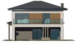 Graficzne opracowanie rzutów poglądowych widocznych na karcie projektu zostało wykonane przez Extradom.pl. Prezentowane przez Extradom.pl wizualizacje wykonane zostały przez autora projektu i należy poczytywać je jedynie za przykład i propozycję wykończenia, wizję architektoniczną autora projektu. Ostateczne wykończenie budynku może nastąpić na wiele sposobów. Szczegółowe rozwiązania zastosowane w oferowanej dokumentacji - w tym również ilość, lokalizacje i wygląd okien, drzwi, kominów - mogą w niewielkim stopniu różnić się od prezentowanej wizualizacji budynku.