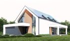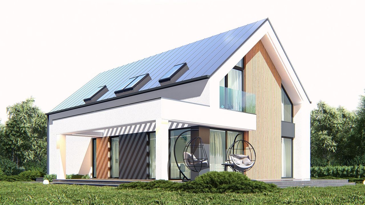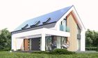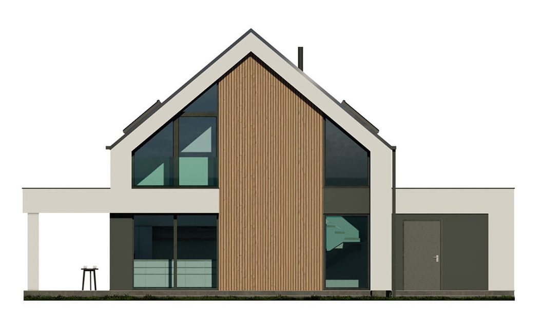 Graficzne opracowanie rzutów poglądowych widocznych na karcie projektu zostało wykonane przez Extradom.pl. Prezentowane przez Extradom.pl wizualizacje wykonane zostały przez autora projektu i należy poczytywać je jedynie za przykład i propozycję wykończenia, wizję architektoniczną autora projektu. Ostateczne wykończenie budynku może nastąpić na wiele sposobów. Szczegółowe rozwiązania zastosowane w oferowanej dokumentacji - w tym również ilość, lokalizacje i wygląd okien, drzwi, kominów - mogą w niewielkim stopniu różnić się od prezentowanej wizualizacji budynku.