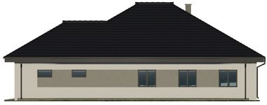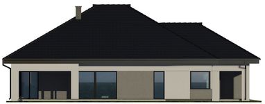 Graficzne opracowanie rzutów poglądowych widocznych na karcie projektu zostało wykonane przez Extradom.pl. Prezentowane przez Extradom.pl wizualizacje wykonane zostały przez autora projektu i należy poczytywać je jedynie za przykład i propozycję wykończenia, wizję architektoniczną autora projektu. Ostateczne wykończenie budynku może nastąpić na wiele sposobów. Szczegółowe rozwiązania zastosowane w oferowanej dokumentacji - w tym również ilość, lokalizacje i wygląd okien, drzwi, kominów - mogą w niewielkim stopniu różnić się od prezentowanej wizualizacji budynku.