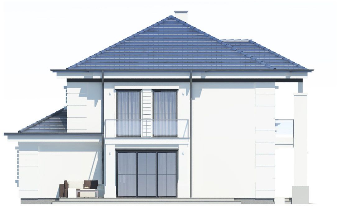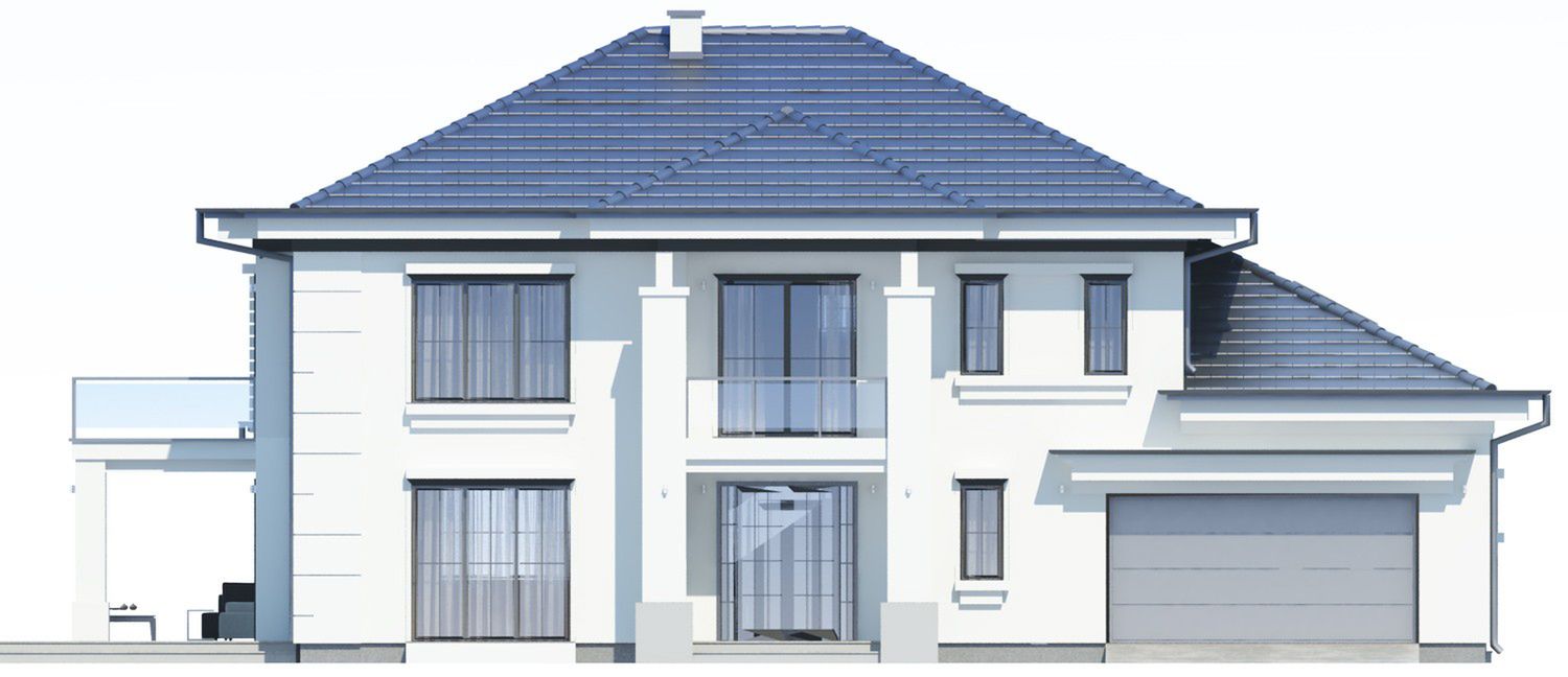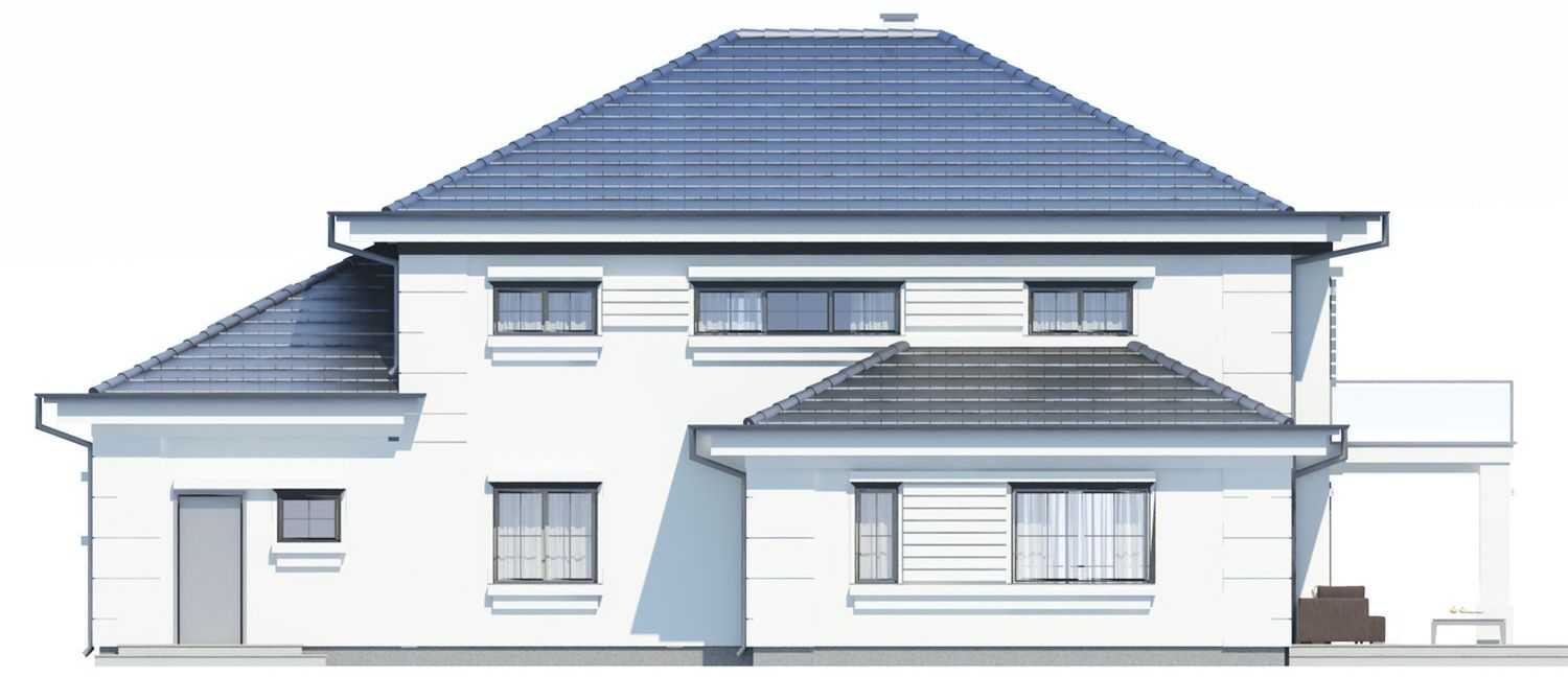 Graficzne opracowanie rzutów poglądowych widocznych na karcie projektu zostało wykonane przez Extradom.pl. Prezentowane przez Extradom.pl wizualizacje wykonane zostały przez autora projektu i należy poczytywać je jedynie za przykład i propozycję wykończenia, wizję architektoniczną autora projektu. Ostateczne wykończenie budynku może nastąpić na wiele sposobów. Szczegółowe rozwiązania zastosowane w oferowanej dokumentacji - w tym również ilość, lokalizacje i wygląd okien, drzwi, kominów - mogą w niewielkim stopniu różnić się od prezentowanej wizualizacji budynku.